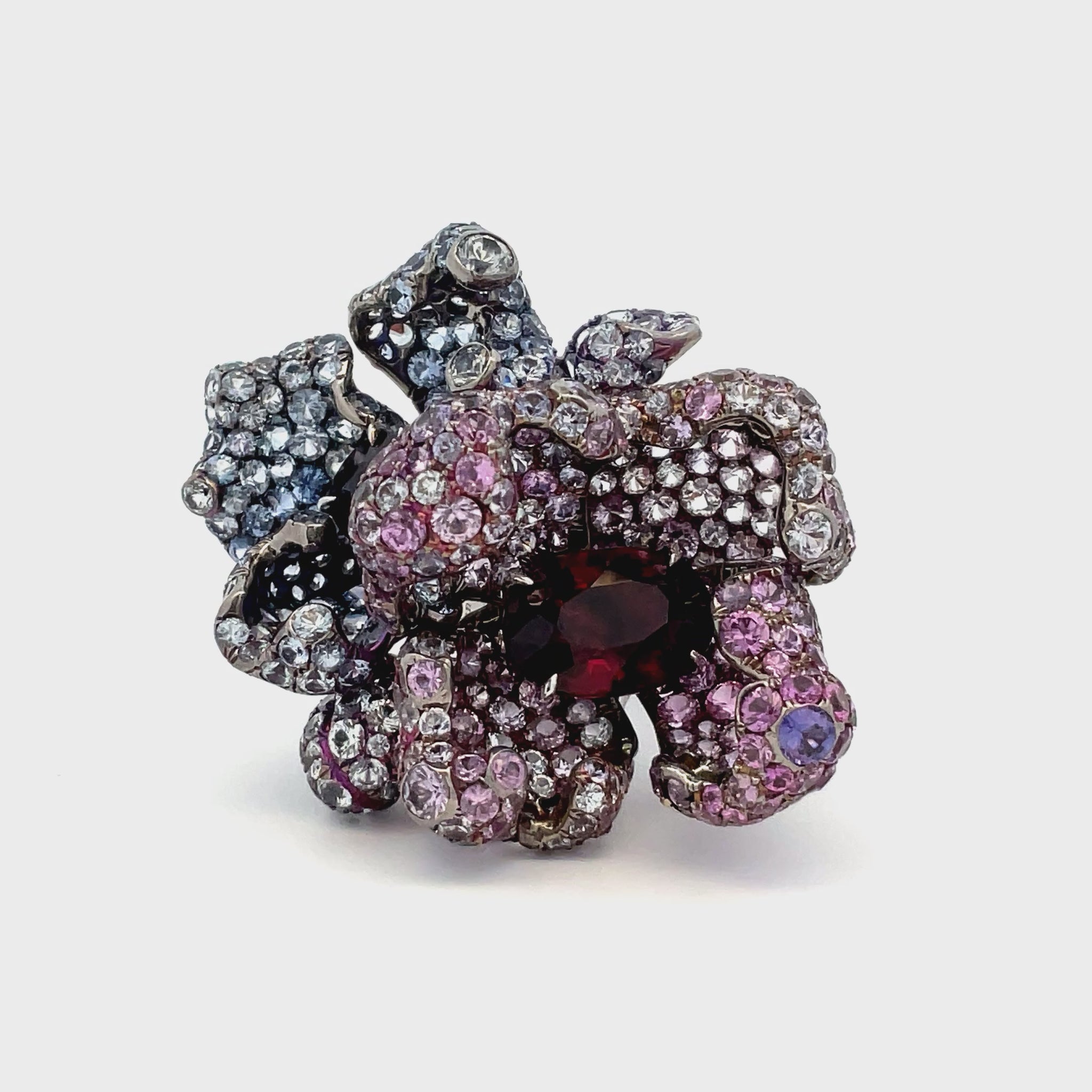 Sapphire Flower Ring features gemstone petals in a design inspired by sapphire’s connection to the heavens and oceans.
