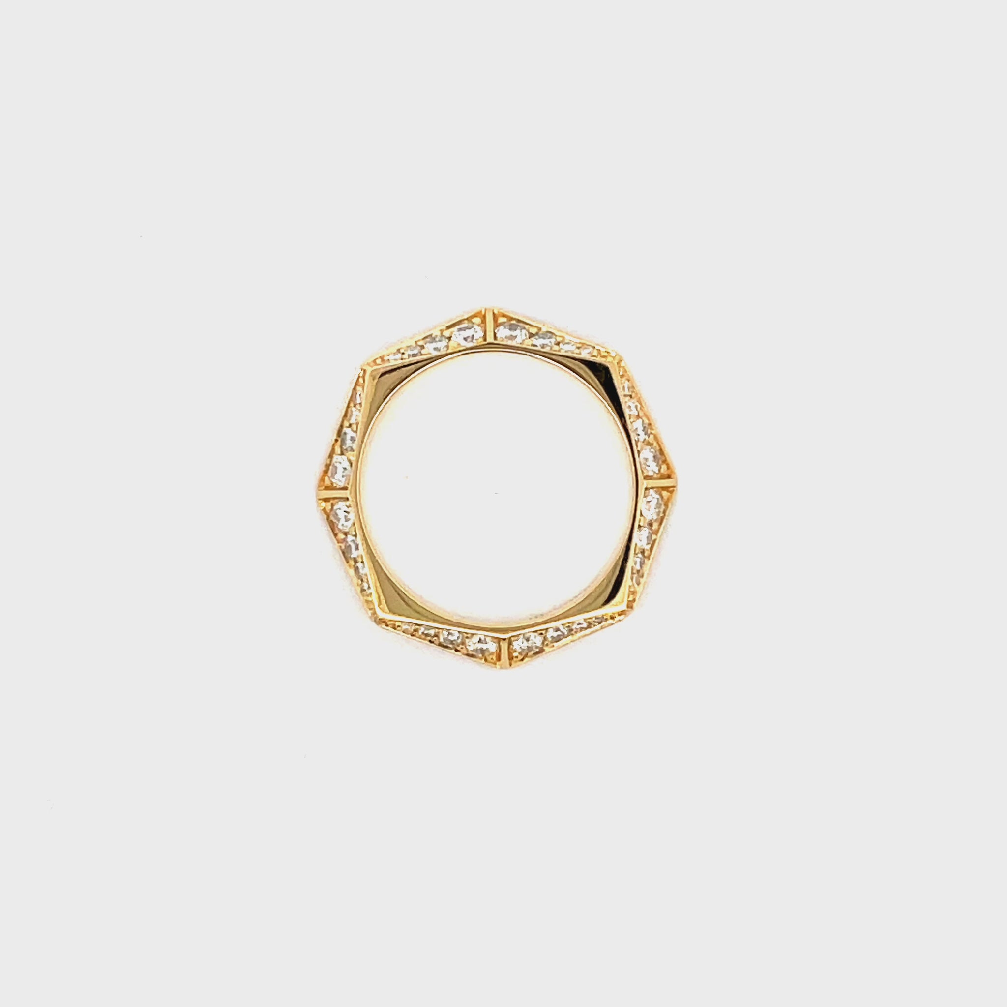 The Yin Yang All Pavé Stacking Band is fully set with shimmering diamonds, creating a fluid, sculptural design that captures light from every angle. Perfect for stacking or wearing solo with radiant impact.